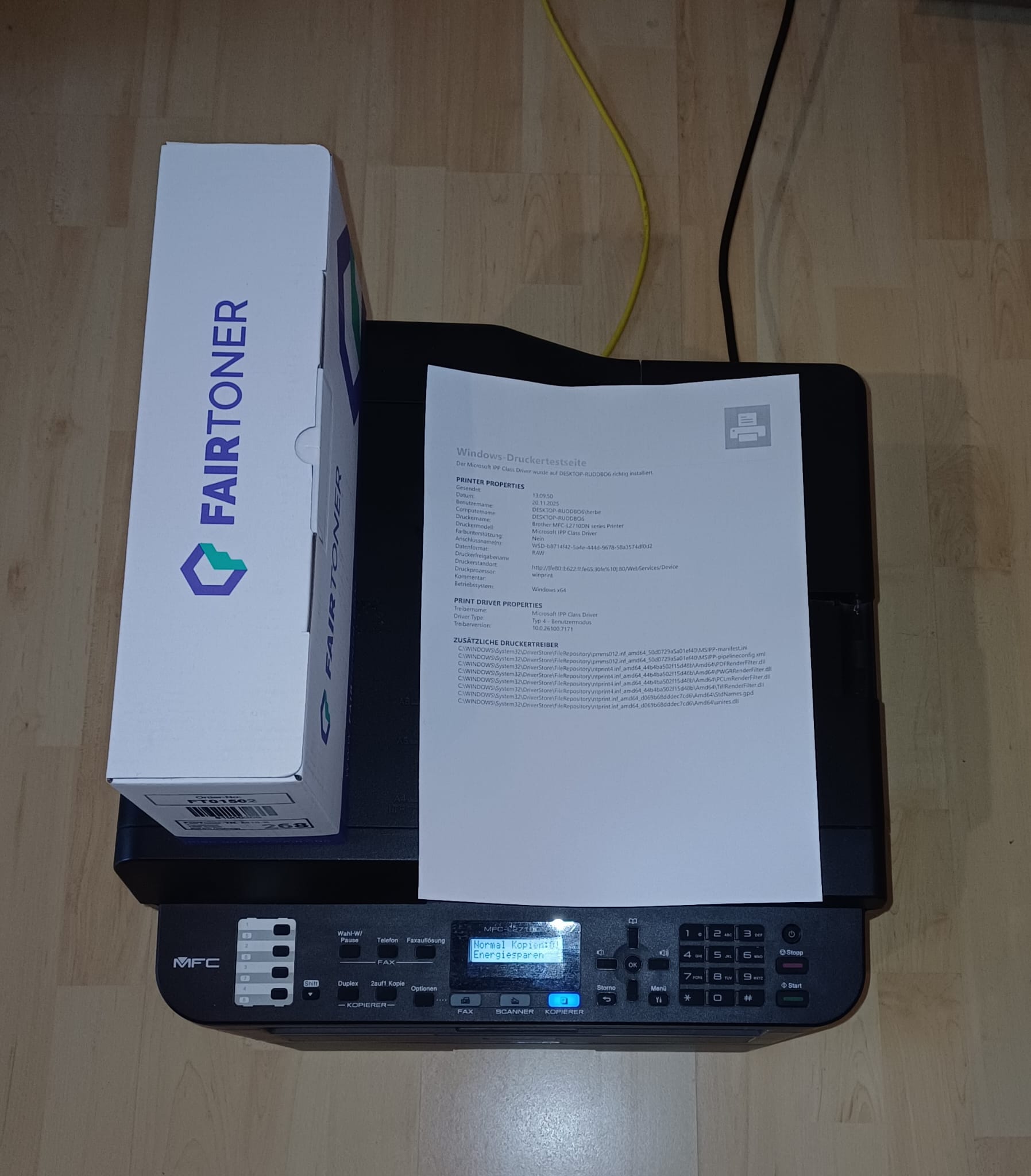 Eingelegter Toner ist leer. Ein Ersatztoner ist mit dabei.
